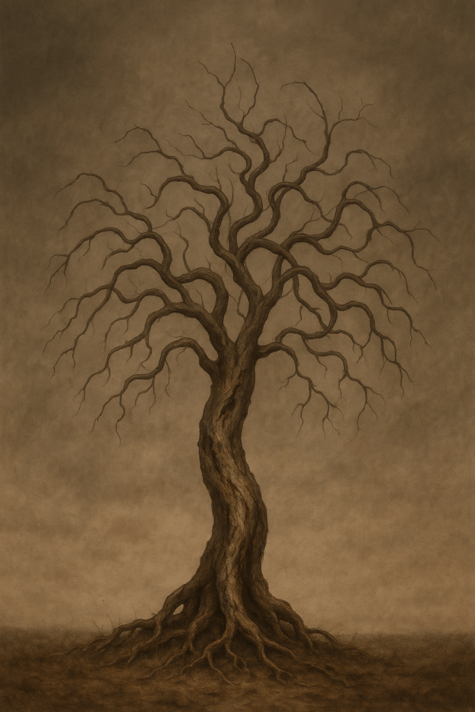 Its branches curled like questions, reaching not toward the sun, but away from shadow. Twisted, hesitant, beautiful in their defiance. It never knew which way was right, only which way wasn’t.